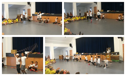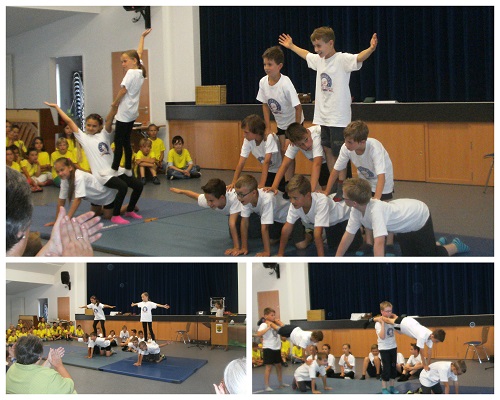 Die 4. Klasse verabschiedete sich mit viel Akrobatik von ihrer Klassenlehrerin Frau Auras: