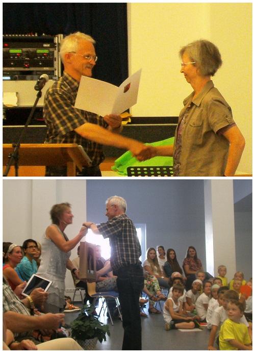 Auf der Abschiedsfeier wurden Frau Rath und Frau Auras mit schönen Darbietungen der Schüler, Geschenken und lieben Worten vom Kollegium, Schulelternbeirat, Förderferein und Eltern noch einmal gefeiert und verabschiedet.