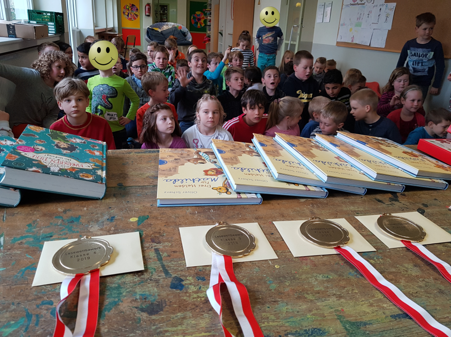 Die Sieger erhielten als Preis für ihre Leseleistung einen Gutschein, ein Buch und eine Medaille, überreicht durch Marius Klein. Auch für die übrigen Teilnehmer gab es Bücher und eine Urkunde.