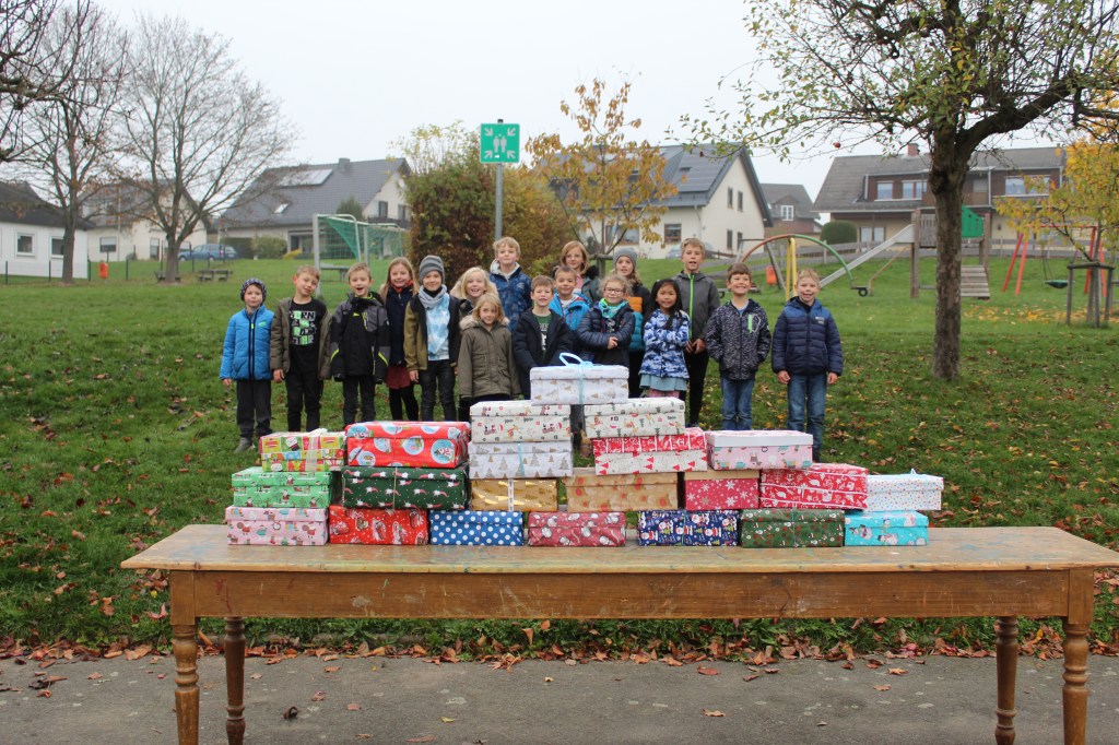 Auch in diesem Jahr beteiligte sich die Grundschule Dachsenhausen an der großen Geschenkaktion. Fleißig fingen die Schülerinnen und Schüler mit ihren Familien an zu packen und brachten ihre liebevoll verzierten Päckchen mit in die Schule.