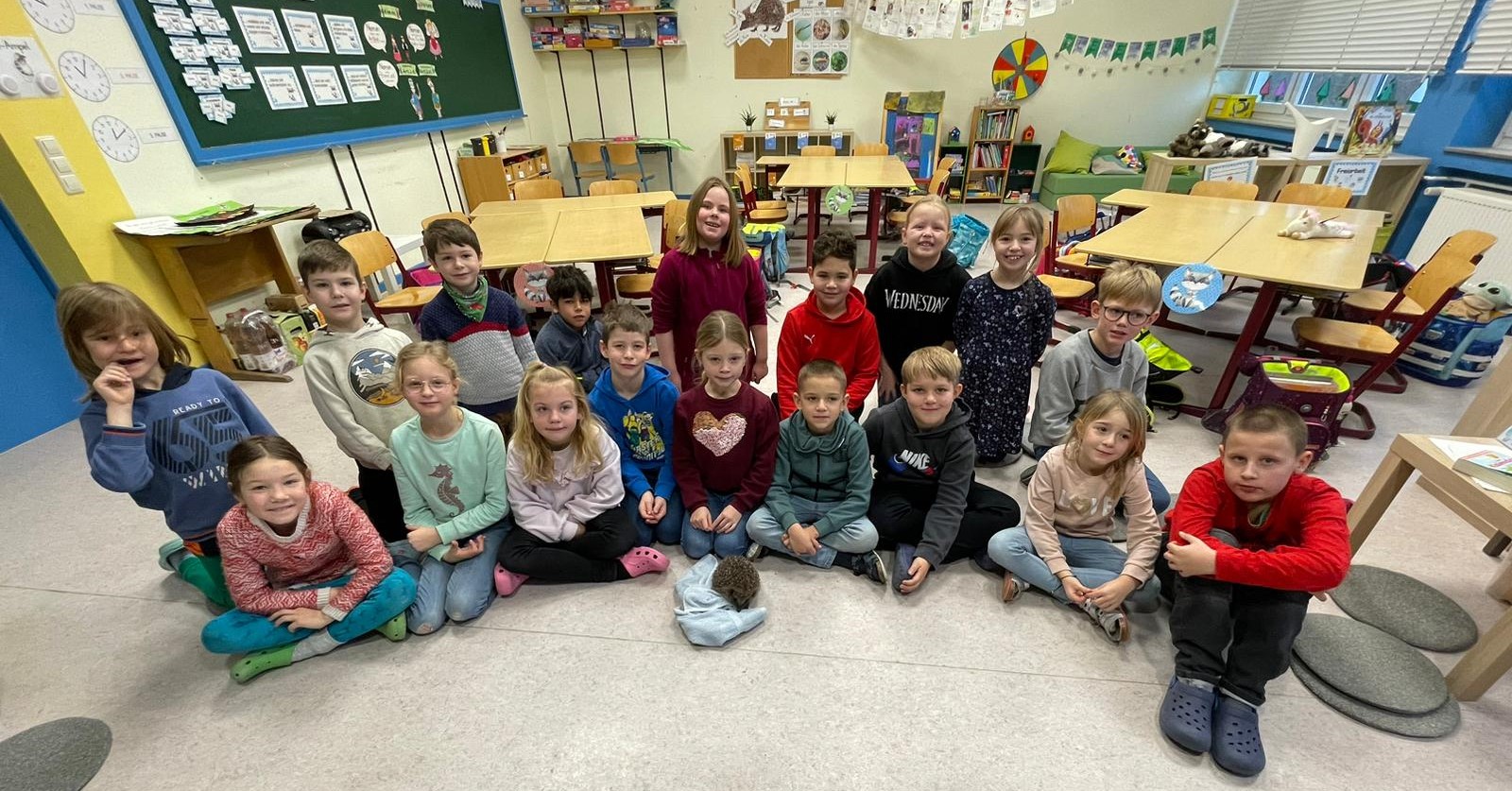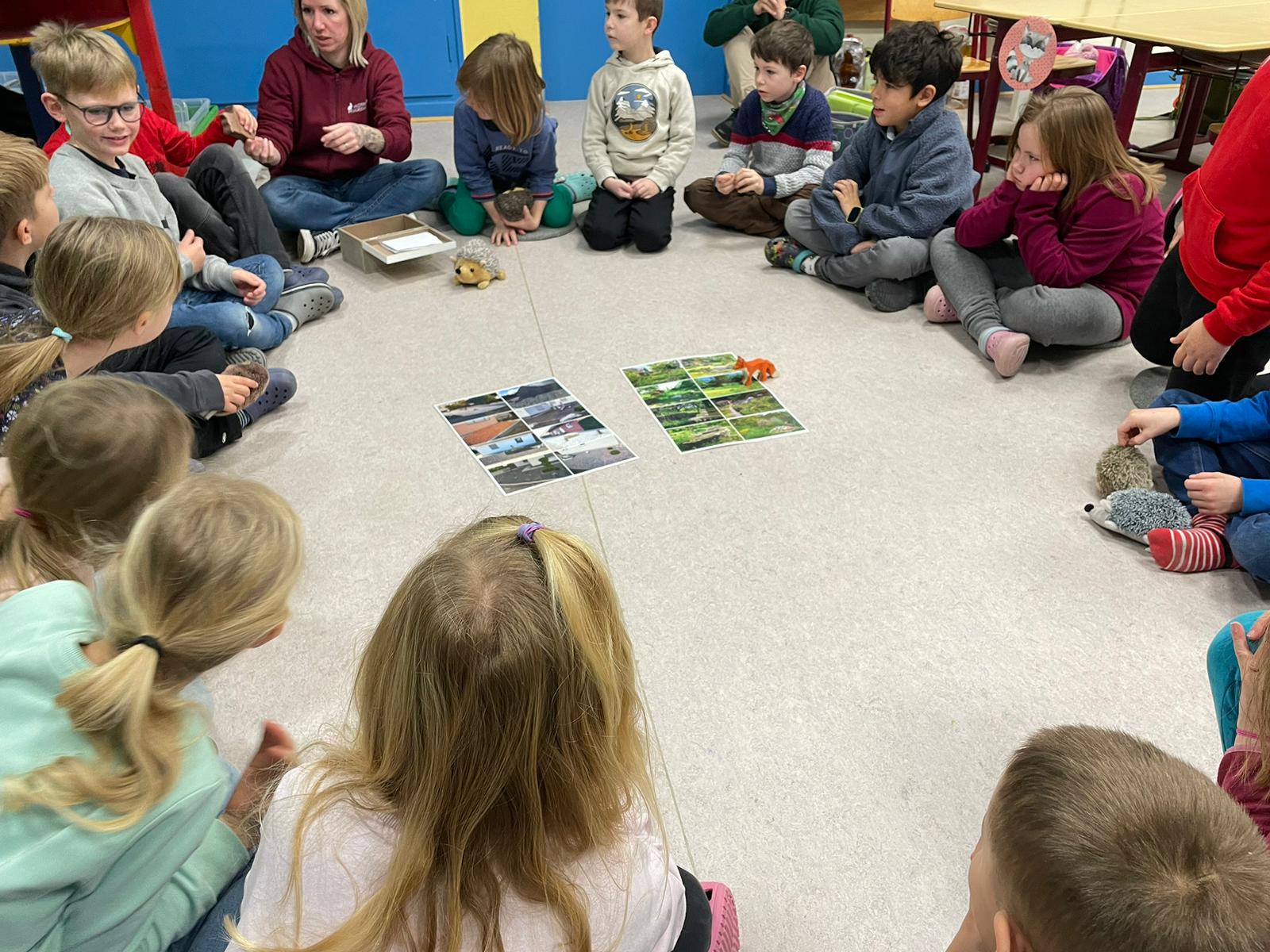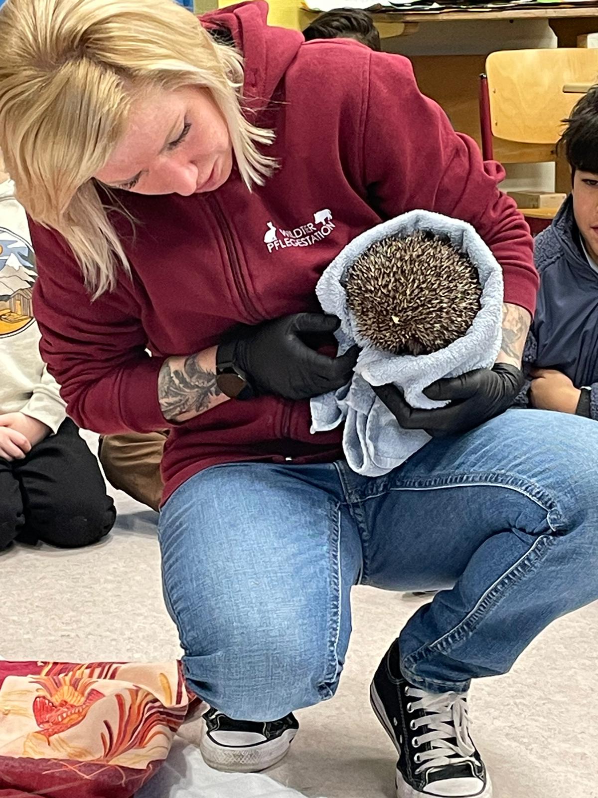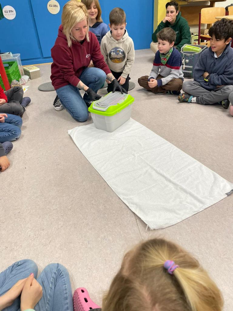 Eine ganz besondere Sachunterrichtsstunde erlebte die 2. Klasse am 12.01.2024. Als Abschluss der Sachunterrichtseinheit zum Thema „Igel“ waren Julia und Ursula Bravetti aus der Wildtierpflegestation Koblenz zu Gast an der Grundschule Dachsenhausen und bereiteten den Schülerinnen und Schülern mit dem mitgebrachten Igel namens „Dante“ eine unvergessliche Unterrichtsstunde. In der Stunde waren die Kinder besonders leise, denn sie wollten den Igel auf keinen Fall erschrecken. Normalerweise hält der Igel Winterschlaf, jedoch hat es Dante nicht geschafft, sich eine ausreichende Fettschicht anzufressen. Deswegen wurde er von der Wildtierpflegestation aus Koblenz aufgenommen, die sich ehrenamtlich um die Aufzucht von verlassenen Jungtieren und die Pflege von kranken und verletzen Tieren kümmert.