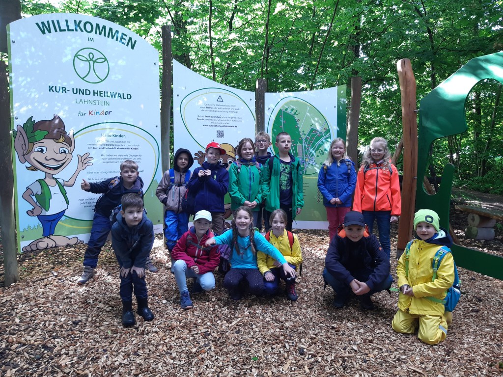 Nachdem die zweite Klasse der Grundschule Dachsenhausen im letzten Jahr das Eichhörnchen Stromi im Stromerwald des Forstamts Lahnstein kennengelernt haben, wollten sie in diesem Jahr unbedingt seinen Freund Till im Kur- und Heilwald in Lahnstein besuchen. Gesagt, getan – am 16.05.2024 machte sich die Waschbärenklasse auf den Weg zu einem Ausflug in den Kur- und Heilwald in Lahnstein. Dieser befindet sich in einem etwa acht Hektar großem Waldbereich am Aspich Lahnstein. Schwerpunkt des Kinderheilwaldes ist die Wiederherstellung der Gesundheit von Kindern. Die vielen Stationen und die tollen erlebnisreichen Übungen sind ein Spaß für Jung und Alt.