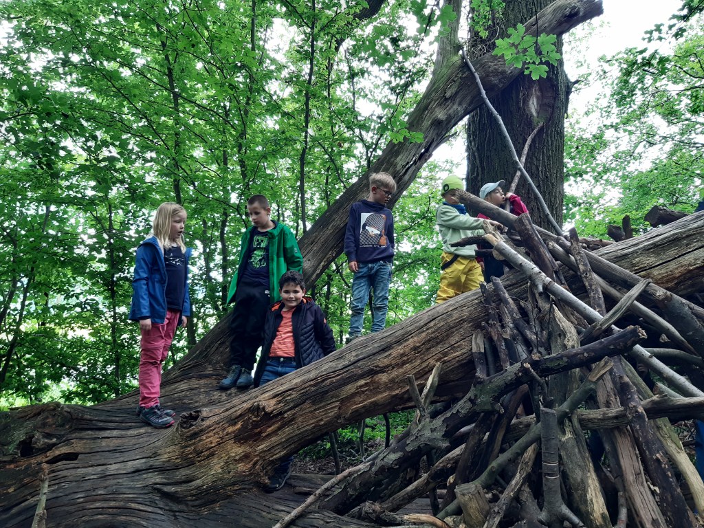 Natürlich durfte die freie Spielzeit nicht fehlen, die in der Waldpädagogik eine große Rolle spielt. Die Kinder durften den Wald auf eigene Faust entdecken und stießen dabei auf ein „Nacktschneckenparadies“ und ein großes Haus aus Stöcken. Ein fröhliches Lachen hallte durch den Lahnsteiner Kur- und Heilwald und zeigte, dass die Kinder ganz viel Spaß hatten.