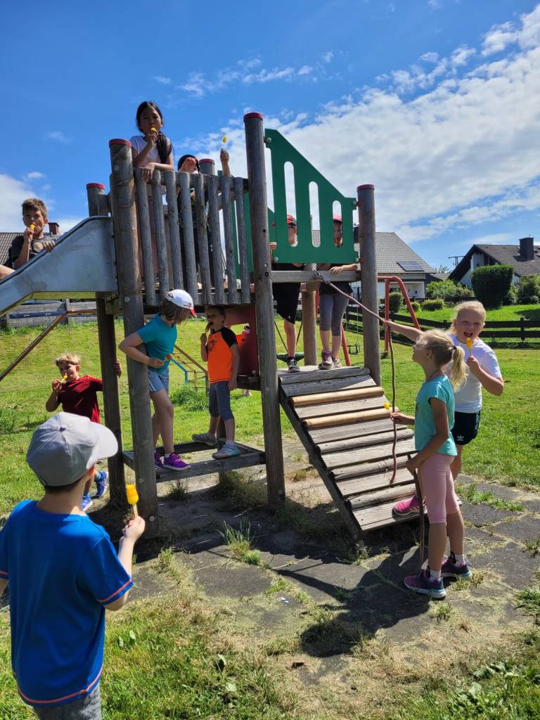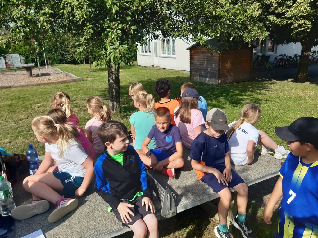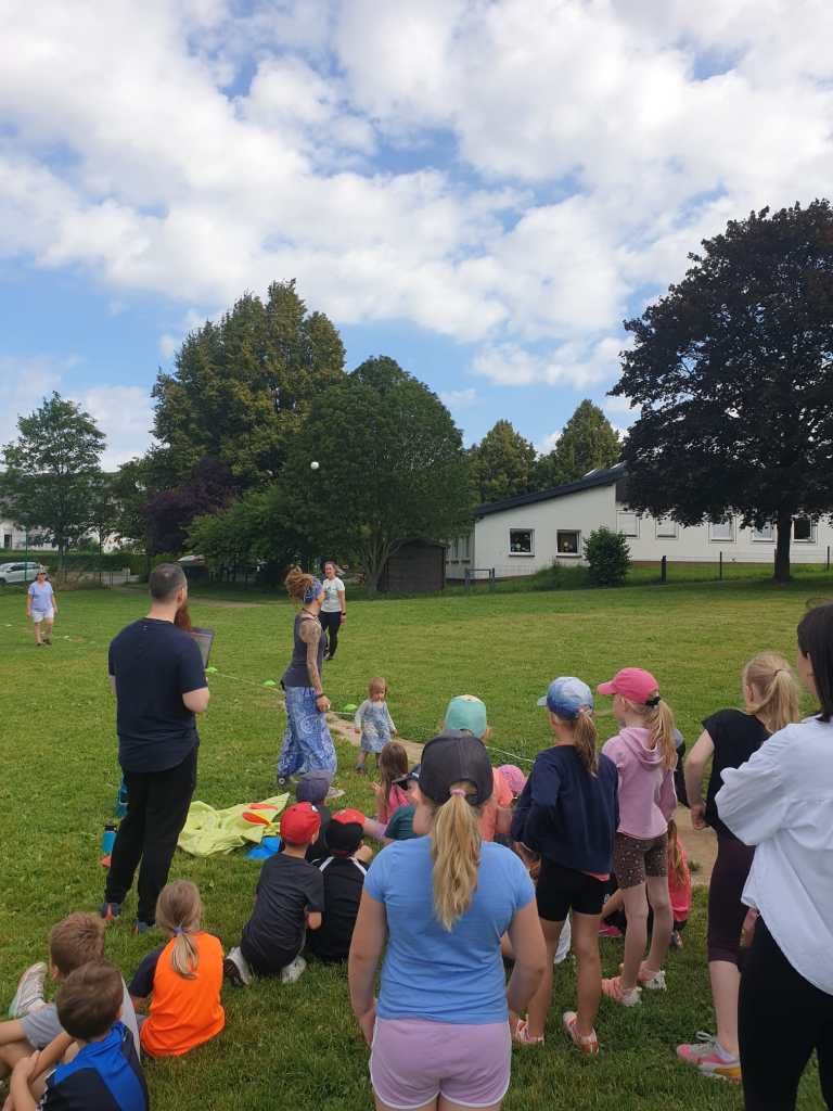Am 28.06.2024 veranstaltete die Grundschule Dachsenhausen ihr traditionelles Sportfest. Bei angenehmen Temperaturen und viel Sonnenschein konnten die Schülerinnen und Schüler der Klassen 1-4 in den Disziplinen Weitsprung, Weitwurf, Sprint und Ausdauerlauf ihr sportliches Können zeigen. Neben den Schulkindern kamen zahlreiche Eltern zum Anfeuern und Helfen. Alle nahmen mit viel Freude und großem Ehrgeiz an dem Wettbewerb teil und gaben ihr Bestes. Zwischendurch hatten die Kinder immer wieder Zeit, um zu frühstücken, die Zusatzstationen Eierlauf oder Dosenwerfen zu erkunden oder auf dem Spielplatz zu toben.