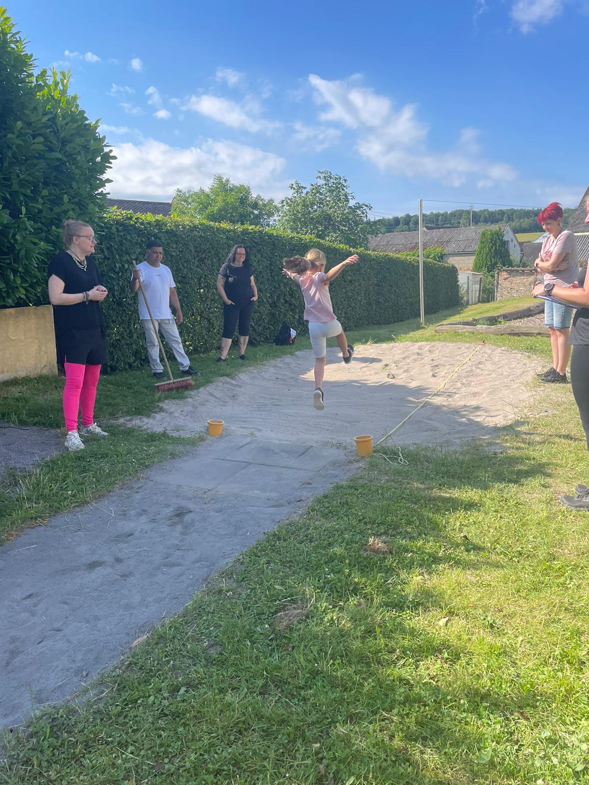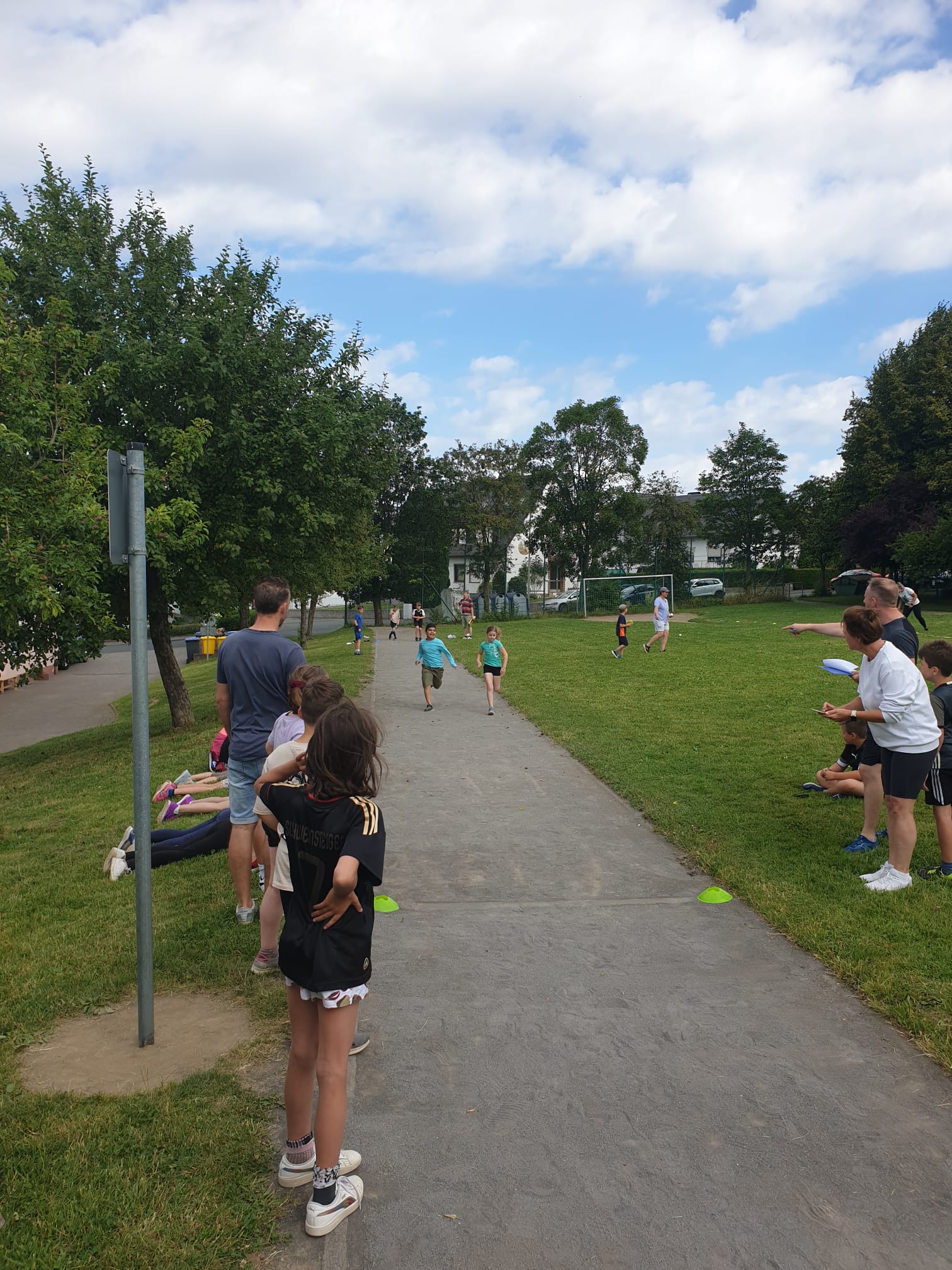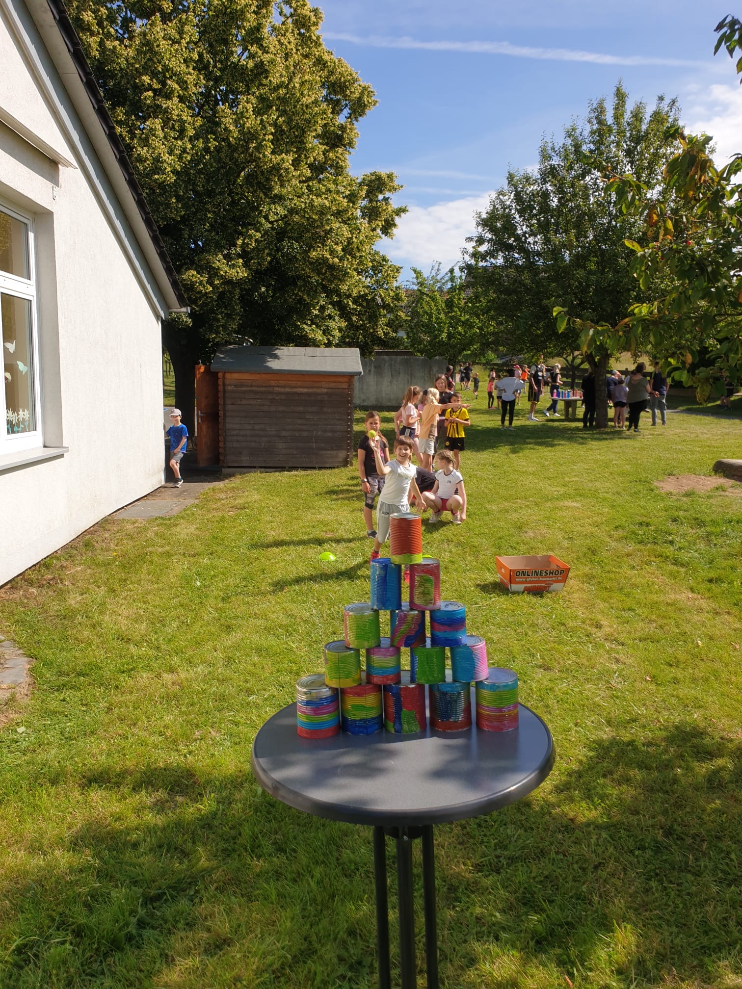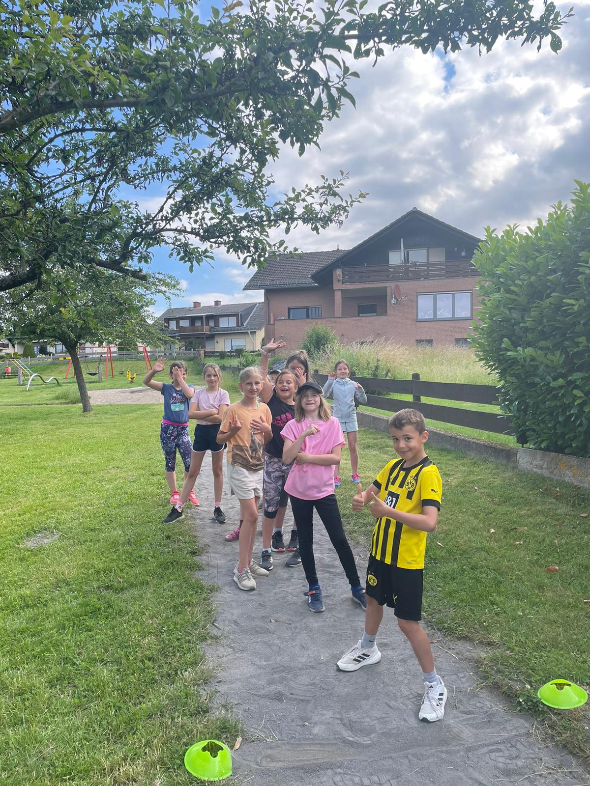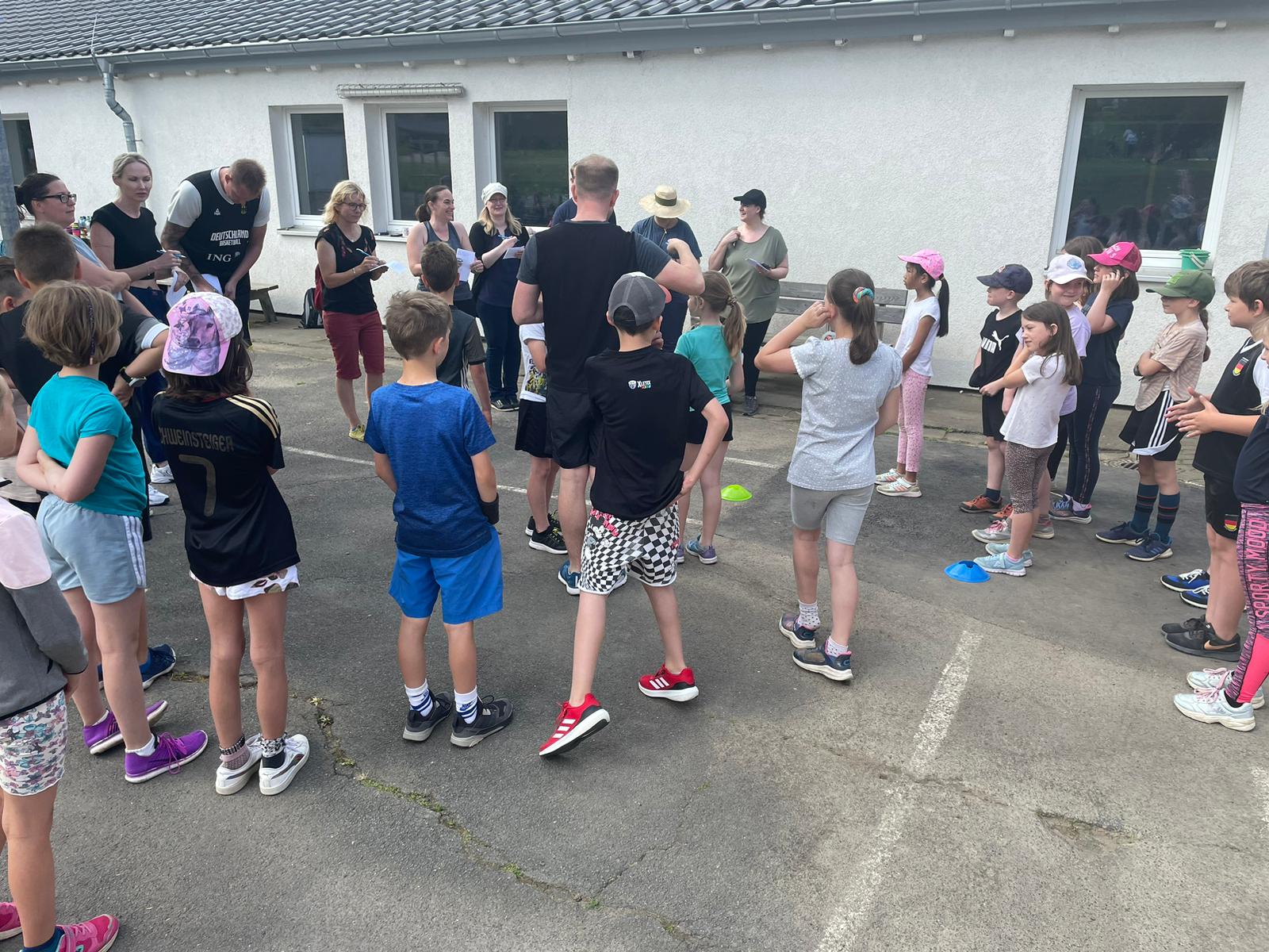 Am 28.06.2024 veranstaltete die Grundschule Dachsenhausen ihr traditionelles Sportfest. Bei angenehmen Temperaturen und viel Sonnenschein konnten die Schülerinnen und Schüler der Klassen 1-4 in den Disziplinen Weitsprung, Weitwurf, Sprint und Ausdauerlauf ihr sportliches Können zeigen. Neben den Schulkindern kamen zahlreiche Eltern zum Anfeuern und Helfen. Alle nahmen mit viel Freude und großem Ehrgeiz an dem Wettbewerb teil und gaben ihr Bestes. Zwischendurch hatten die Kinder immer wieder Zeit, um zu frühstücken, die Zusatzstationen Eierlauf oder Dosenwerfen zu erkunden oder auf dem Spielplatz zu toben.
