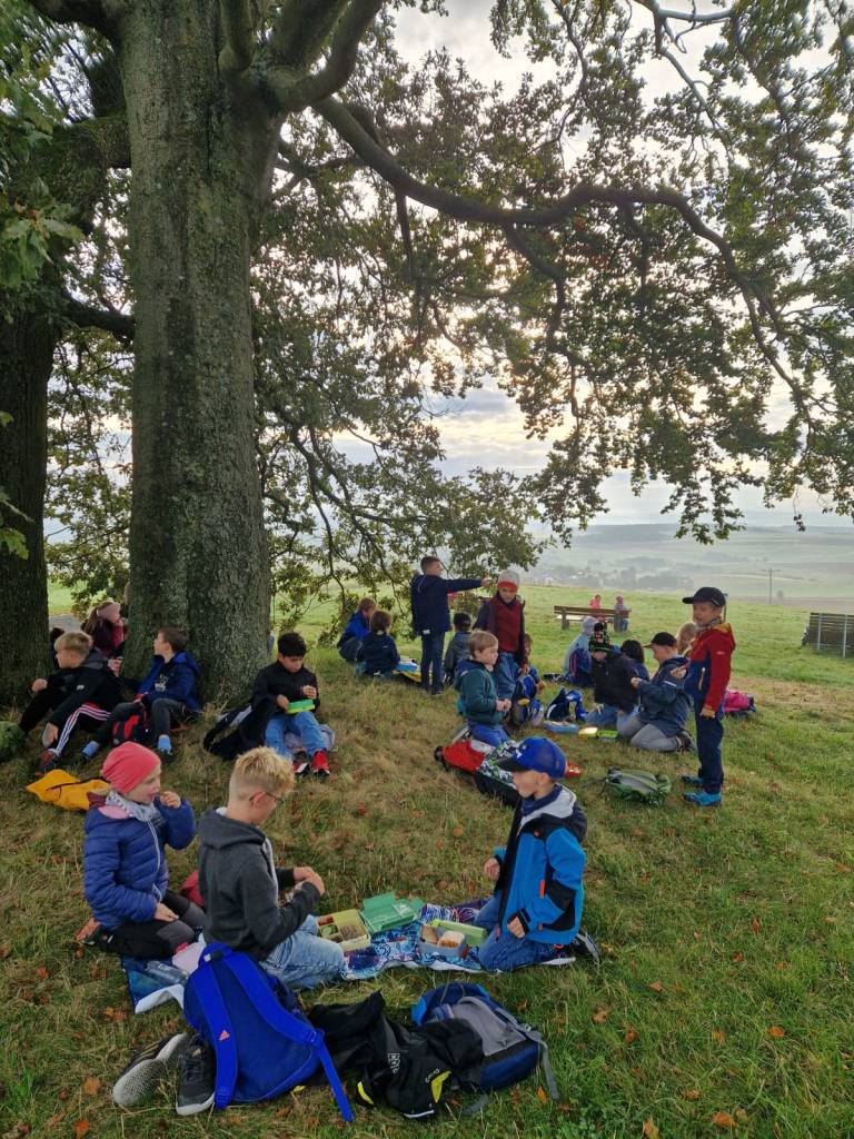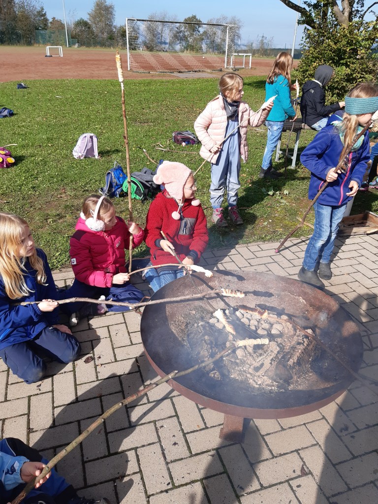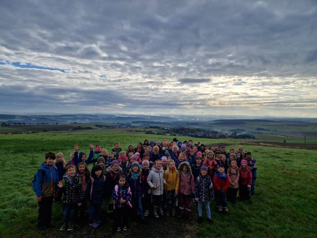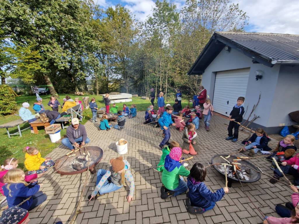Am 02.10.2024 nutzte die Grundschule Dachsenhausen das schöne Herbstwetter, um zu einer Wanderung in die heimische Umgebung aufzubrechen. Gemeinsam machte man sich auf zum „Heisebäumchen“, um dort ausgiebig zu frühstücken und den Ausblick zu genießen. Danach ging es weiter zum Sportplatz in Dachsenhausen. Die Kinder hatten beim Wandern und beim Spielen im Wald großen Spaß. Sie nutzen die freie Spielzeit und es wurde ausgiebig getobt. Ein großer Dank geht an Stefan Wöll vom Kinder- und Jugendbüro der Verbandsgemeinde Loreley, der uns eine Vielzahl an Spielzeugen zur Verfügung gestellt hat, sowie an Diana Christ, die ein Kreativangebot aus Herbstmaterialien für die Kinder vorbereitet hat. Auch auf der schuleigenen Slackline übten die Kinder das Balancieren und hatten riesigen Spaß dabei. Als Highlight gab es für alle Kinder Stockbrot, welches sie über dem offenen Feuer grillen durften. Vielen Dank an den neuen SEB und alle helfenden Eltern für die Unterstützung und Organisation. Der Tag war rundum gelungen – ein toller Start in ein verlängertes Wochenende.