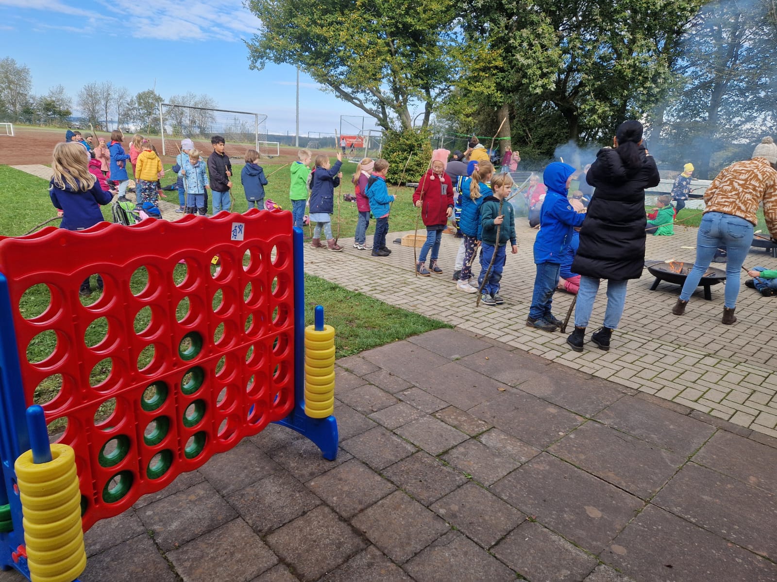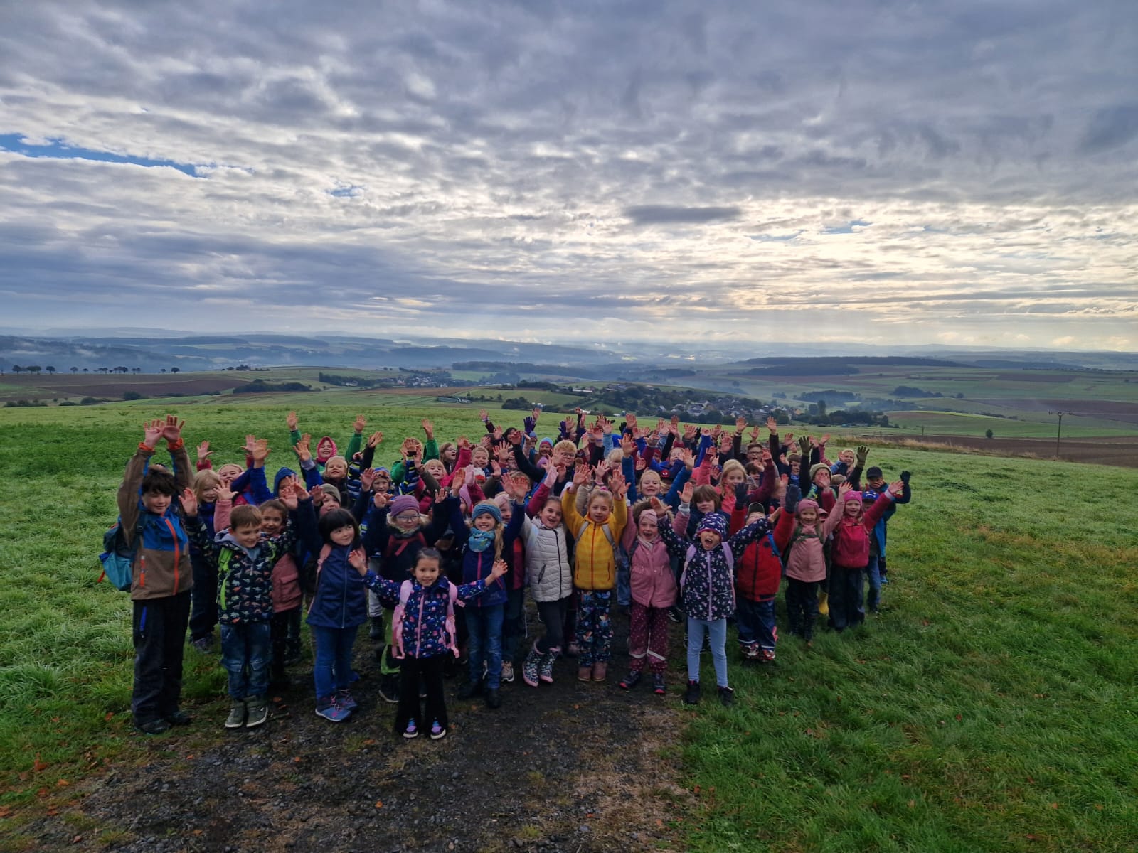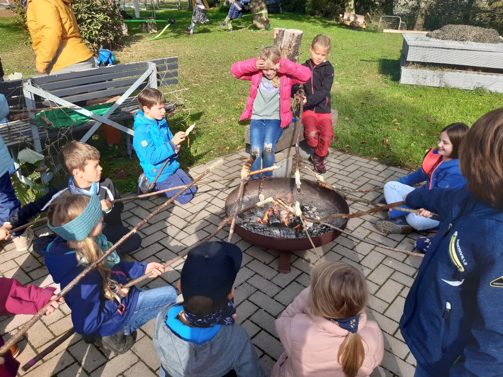 Am 02.10.2024 nutzte die Grundschule Dachsenhausen das schöne Herbstwetter, um zu einer Wanderung in die heimische Umgebung aufzubrechen. Gemeinsam machte man sich auf zum „Heisebäumchen“, um dort ausgiebig zu frühstücken und den Ausblick zu genießen. Danach ging es weiter zum Sportplatz in Dachsenhausen. Die Kinder hatten beim Wandern und beim Spielen im Wald großen Spaß. Sie nutzen die freie Spielzeit und es wurde ausgiebig getobt. Ein großer Dank geht an Stefan Wöll vom Kinder- und Jugendbüro der Verbandsgemeinde Loreley, der uns eine Vielzahl an Spielzeugen zur Verfügung gestellt hat, sowie an Diana Christ, die ein Kreativangebot aus Herbstmaterialien für die Kinder vorbereitet hat. Auch auf der schuleigenen Slackline übten die Kinder das Balancieren und hatten riesigen Spaß dabei. Als Highlight gab es für alle Kinder Stockbrot, welches sie über dem offenen Feuer grillen durften. Vielen Dank an den neuen SEB und alle helfenden Eltern für die Unterstützung und Organisation. Der Tag war rundum gelungen – ein toller Start in ein verlängertes Wochenende.