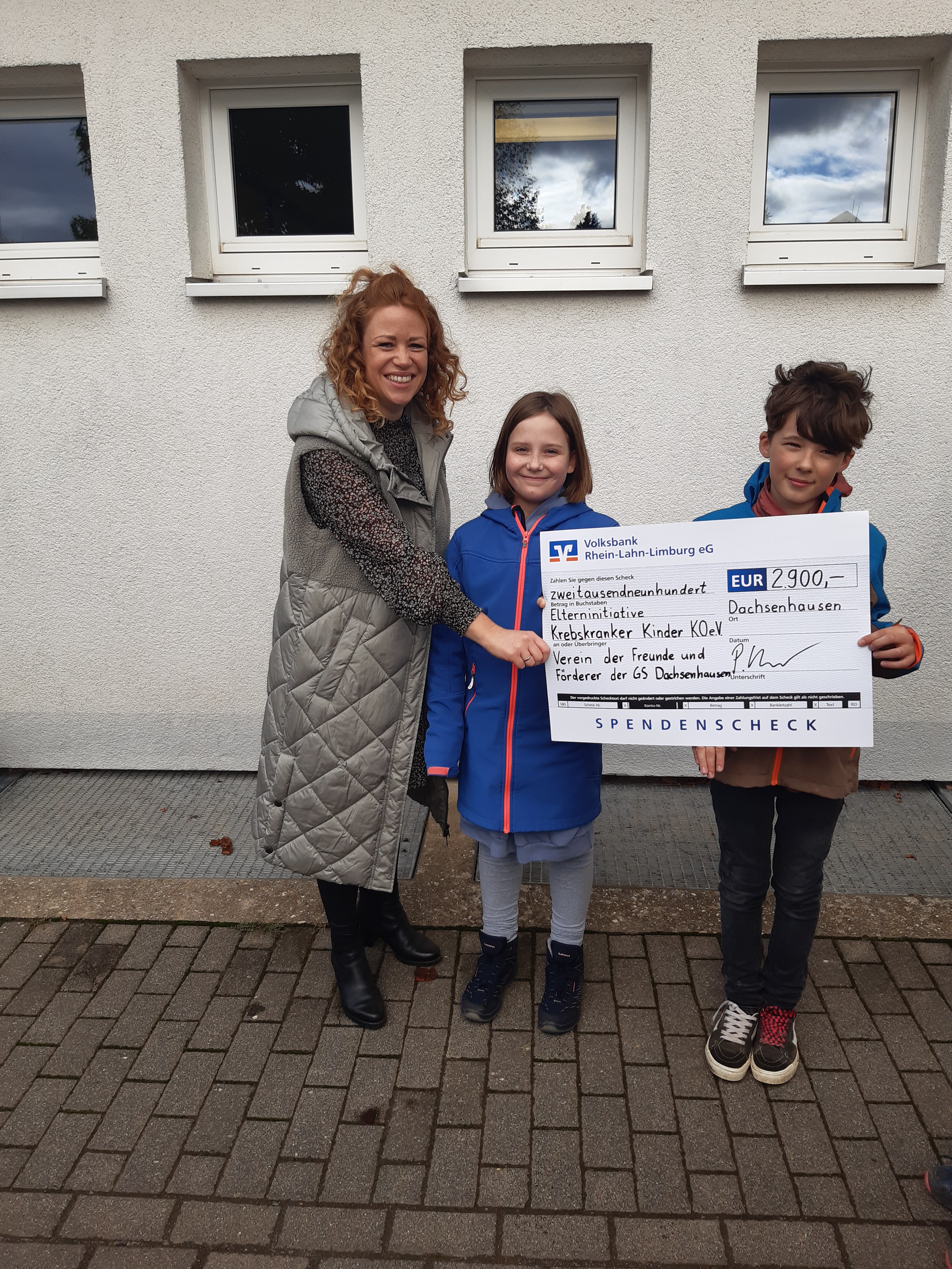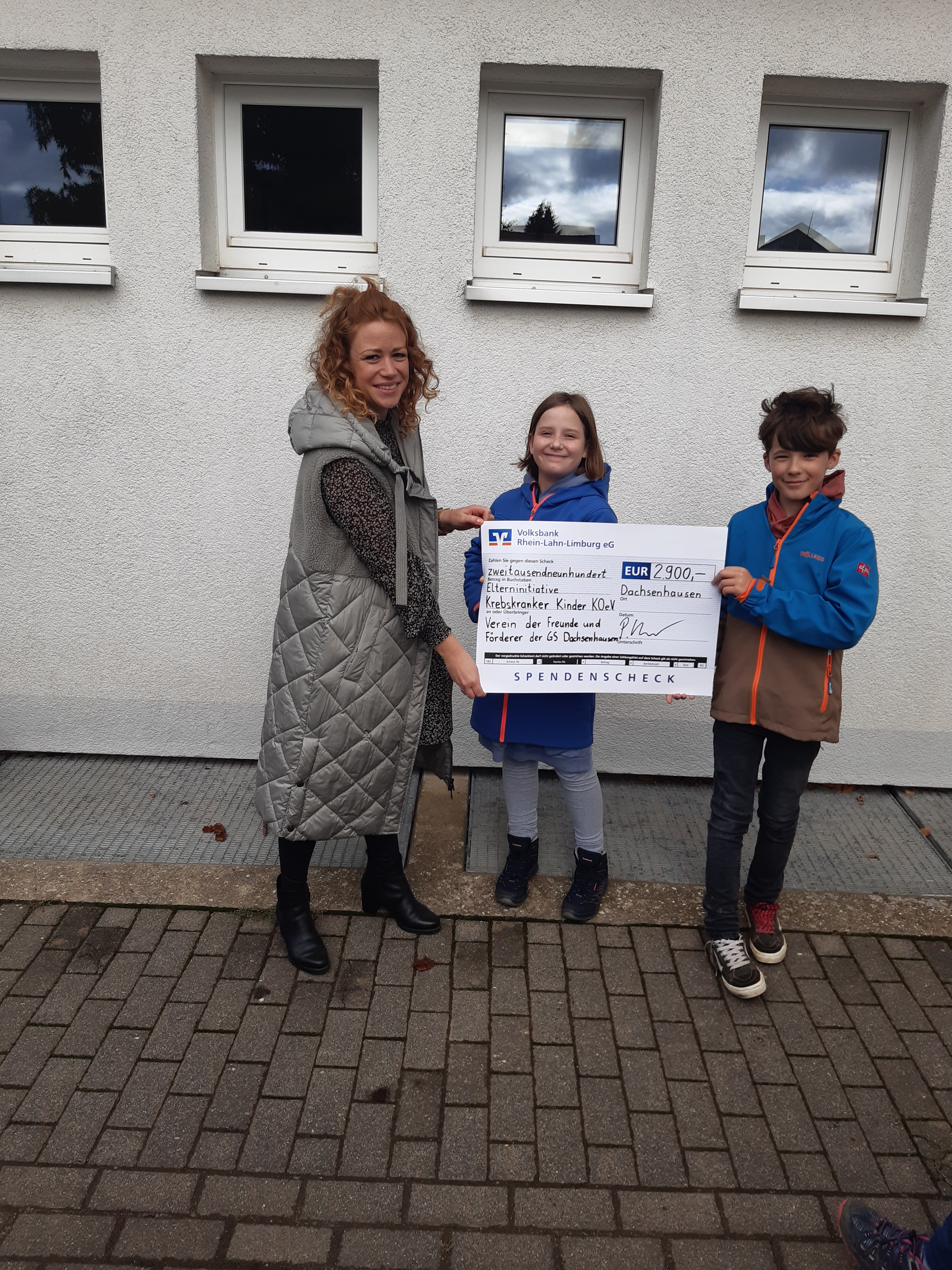 Am 01.10.2024 konnten die Schülerinnen und Schüler im Beisein des Fördervereins der Grundschule Dachsenhausen den Spendencheck in Höhe von 2900 Euro an Frau Tina Wahlen, einer Mitarbeiterin der Elterninitiative krebskranker Kinder Koblenz e.V., überreichen. Bei dieser Gelegenheit stellte Frau Wahlen gerne die Projekte vor, die durch die Spenden realisiert werden können und beantwortete die Fragen der neugierigen Kinder.