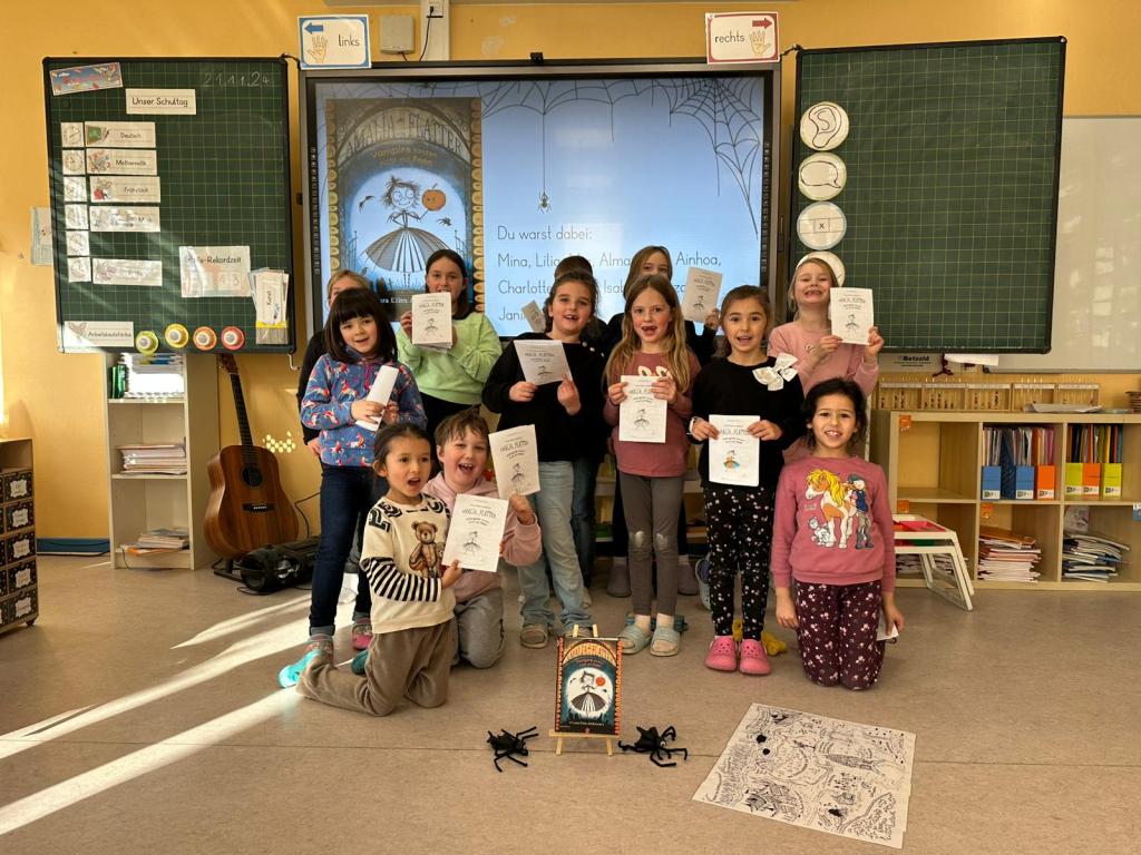 Alljährlich findet im November ein bundesweiter Vorlesetag statt – in diesem Jahr unter dem Motto: Vorlesen schafft Zukunft. Angelehnt an diesen Aktionstag stellte auch die Grundschule Dachsenhausen am 22.11.2024 das Vorlesen in den Fokus, denn eine gelungene Leseförderung ist ein fester Bestandteil der Schulbildung. Die Kinder der Grundschule Dachsenhausen lieben es, wenn vorgelesen wird. Diese besondere Atmosphäre stärkt das Gruppengefühl, regt die Fantasie an und lässt die Kinder zur Ruhe kommen. Im Vorfeld durften die Kinder ganz nach ihrem Interesse zwischen 5 Büchern wählen. In jahrgangsübergreifenden Gruppen fanden sie sich am Morgen zusammen und lauschten gespannt den verschiedenen Geschichten, die von dem „kleinen Geist, der sein Buh verlor“, über „Amalia von Flatter“, „Die Monsterpost“ und „Bitte nicht öffnen bissig“ zu „Willkommen bei den Grauses“ reichten. Im Anschluss daran setzen sich die Schülerinnen und Schüler auf unterschiedlichste Weisen mit den Inhalten der Bücher auseinander. Vor allem der Spaß stand im Vordergrund. Die Kinder haben toll zusammengearbeitet und sich gegenseitig super unterstützt. Die Ergebnisse können sich wirklich sehen lassen!