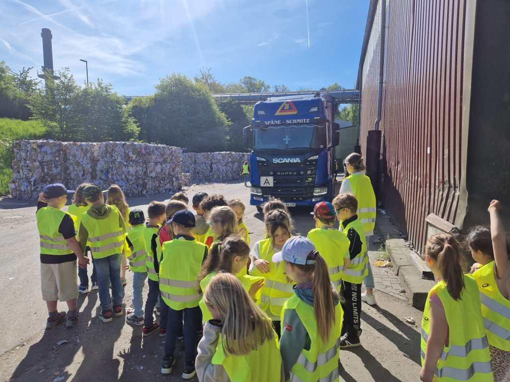 Eine gesunde Natur sowie dessen Schutz ist Aufgabe von allen. Ein wichtiger Baustein dabei ist eine vernünftige Mülltrennung. Doch was gehört eigentlich in welche „Tonne“? Was passiert mit unserem Abfall, nachdem die Müllabfuhr ihn abgeholt hat? Diese und viele weitere Fragen stellten sich die Kinder der Eisbären- und der Fledermausklasse im Sachunterricht während einer Einheit zum Thema „Müll“. Um alle offenen Fragen zu klären, besuchten beide Klassen gemeinsam am Mittwoch, den 30.04.2025, das Abfallwirtschaftszentrum in Singhofen.