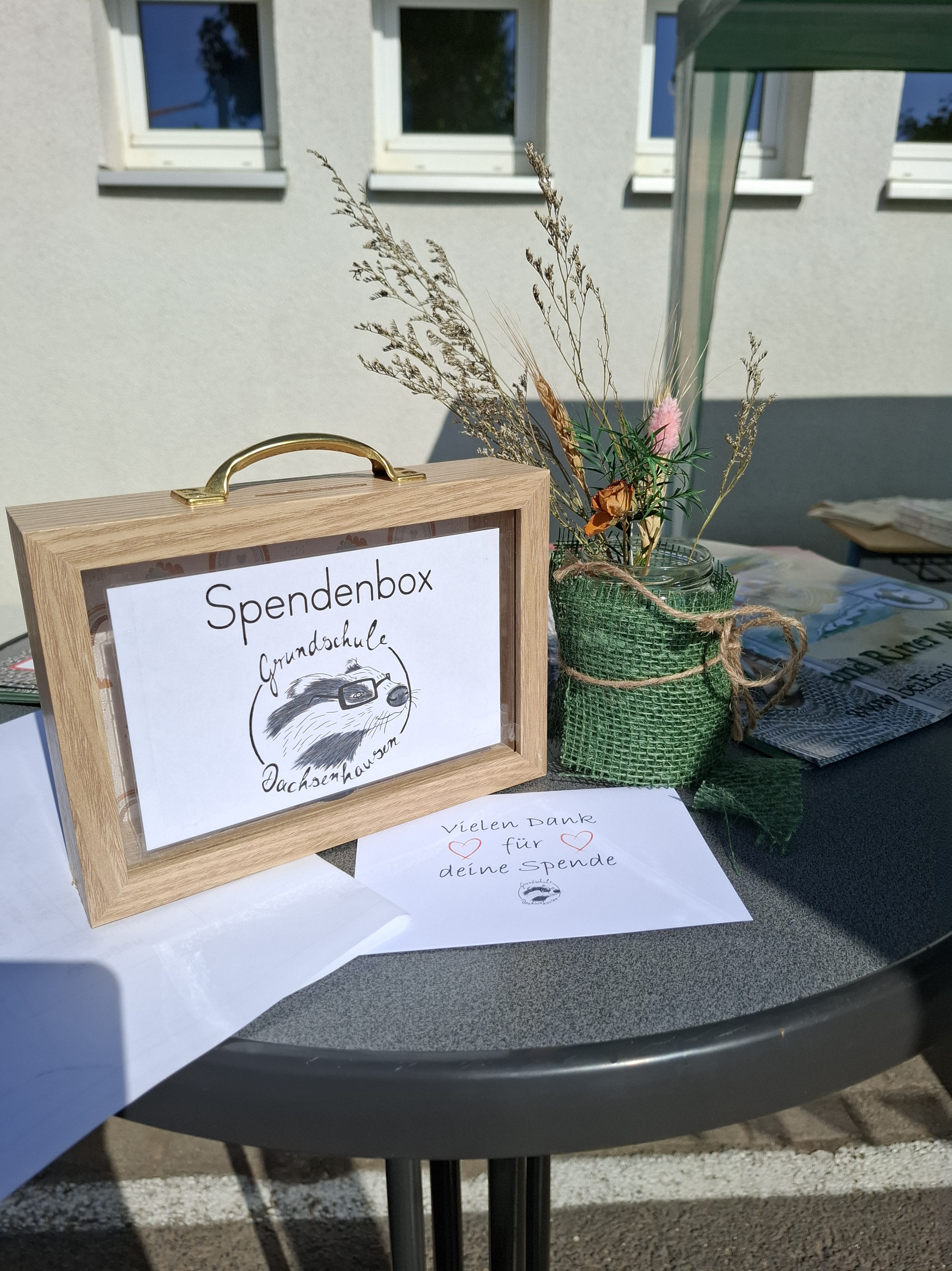 An der Kuchentheke, am Würstchenverkauf und am Getränkestand sorgten zahlreiche fleißige Helferinnen und Helfer für das leibliche Wohl der Besucher. Herzlichen Dank an alle, die bei der Planung, beim Auf- und Abbau und bei der Umsetzung des Festes mitgewirkt haben, insbesondere dem Schulelternbeirat der Grundschule Dachsenhausen. Ein großer Dank geht außerdem an den Förderverein der Grundschule Dachsenhausen, ohne dessen finanzielle Unterstützung die Projektwoche sowie das Schulfest nicht hätte stattfinden können, an die deutsche Burgenvereinigung, vor allem an Michael Kirschlager, für den Besuch der Marksburg, die Durchführung der Projektwoche, die Autorenlesungen, die gespendeten Preise fürs Glücksrad sowie die gesponserten Thüringer Würstchen, an Ute Bernardy, Ute Bräunlich und Diandra Dillmann für die Unterstützung in der Projektwoche, an den Globus Baumarkt in Lahnstein, der die Grundschule mit Sachspenden im Wert über 200 Euro unterstützte, an Jacqueline von Tippelskirch, die die Kreativwerkstatt über die Firma Zschimmer und Schwarz mit Leder für die Projektwoche ausstattete und an den DM Markt Nastätten sowie den Hagebaumarkt für weitere Sachspenden im Zuge der Glücksrad-Aktion.