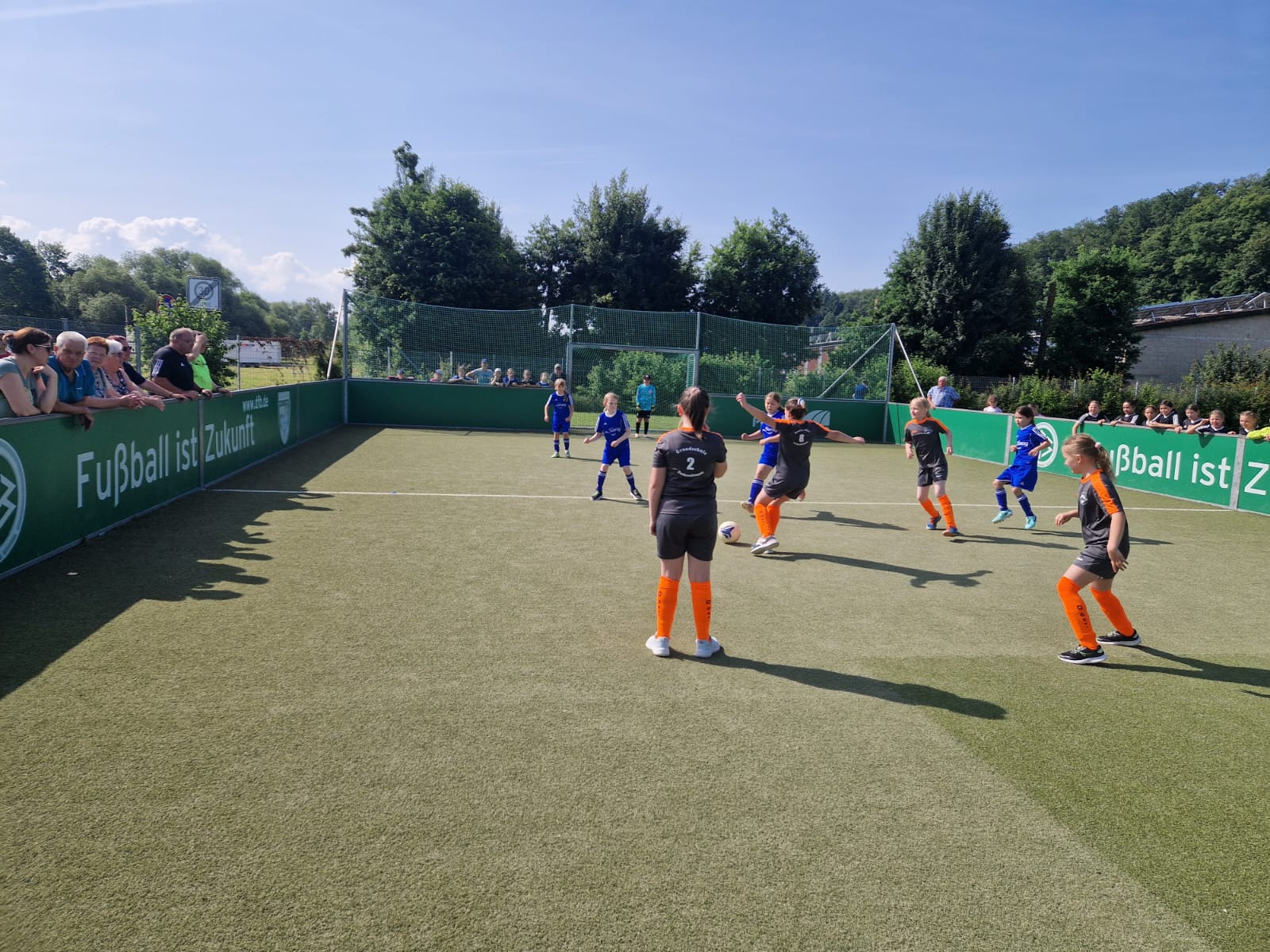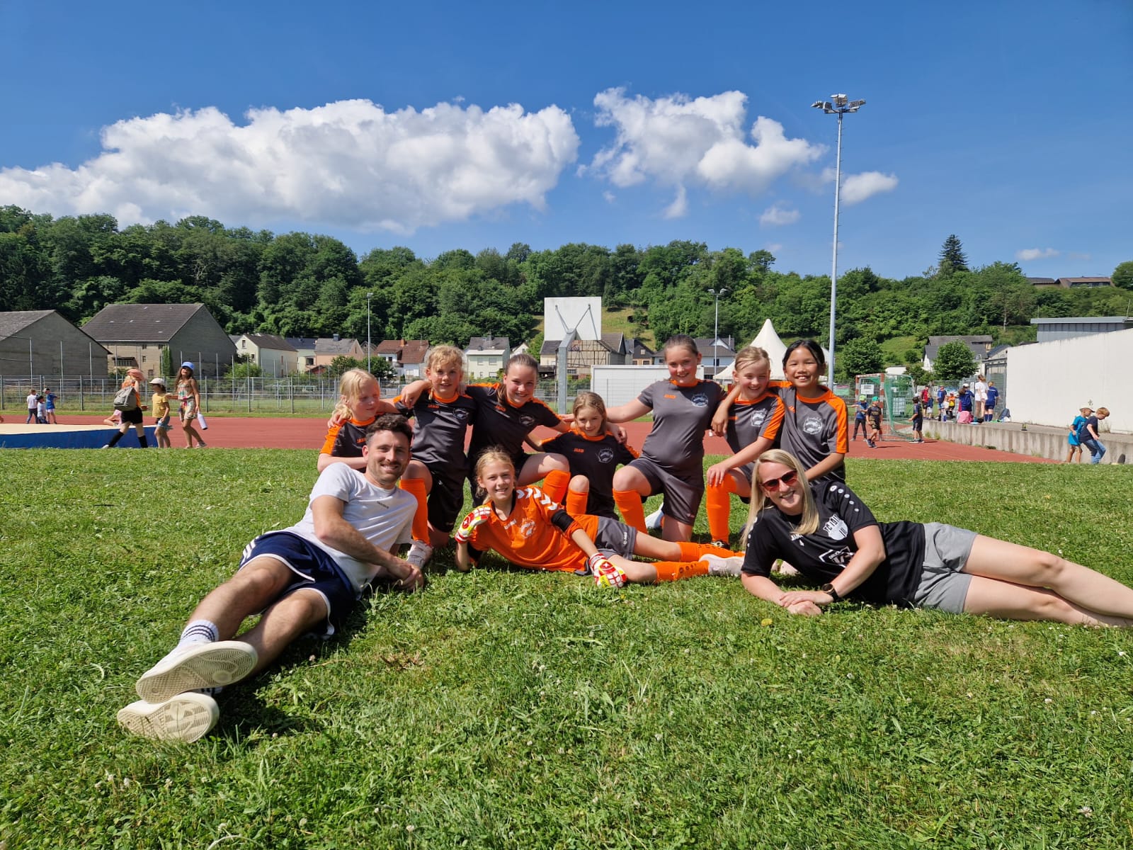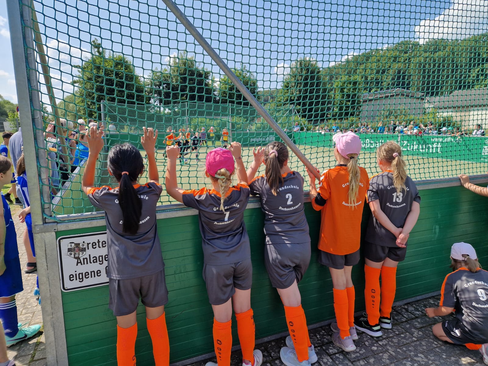 Am 17.06.2025 fand das beliebte Mädchenfußballturnier der Grundschulen im Rhein-Lahn-Kreis in Niederneisen statt. Nach einer längeren Pause nahmen in diesem Jahr endlich wieder 8 motivierte Schülerinnen der Grundschule Dachsenhausen an dem Turnier teil. Um 7:00 Uhr ging die Reise nach Niederneisen los. Zwölf Mannschaften aus verschiedenen Grundschulen des Rhein-Lahn-Kreises spielten um den Pokal. Tapfer kämpfte sich die Mannschaft aus Dachsenhausen bei 26 Grad und strahlend blauem Himmel von Spiel zu Spiel. Leider konnten sie sich dabei nicht gegen ihre Konkurrenz durchsetzen. Trotzdem stand der Spaß im Vordergrund. Rundum war es ein sehr erfolgreicher Tag nach dem Motto „Teamwork“ und „Fairplay“.