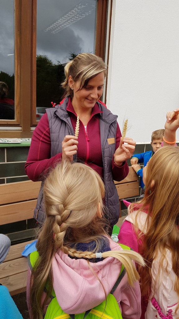 Betrachtet man Dachsenhausen aus der Vogelperspektive, so mag einem auffallen, dass der Ort umringt von Getreidefeldern ist. Und so ist es kein Wunder, dass sich die Klasse 3 der Grundschule Dachsenhausen passend zur Erntezeit im Spätsommer mit dem Thema Getreide im Sachunterricht beschäftigt hat. Neben den verschiedenen Getreidesorten, deren Wachstum und Nutzen für Mensch und Tier, betrachtete die Klasse auch den Anbau und Abbau des Getreides sowie die benötigten Maschinen.