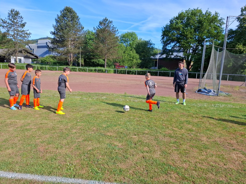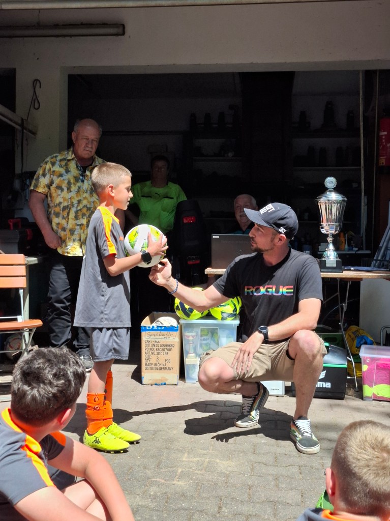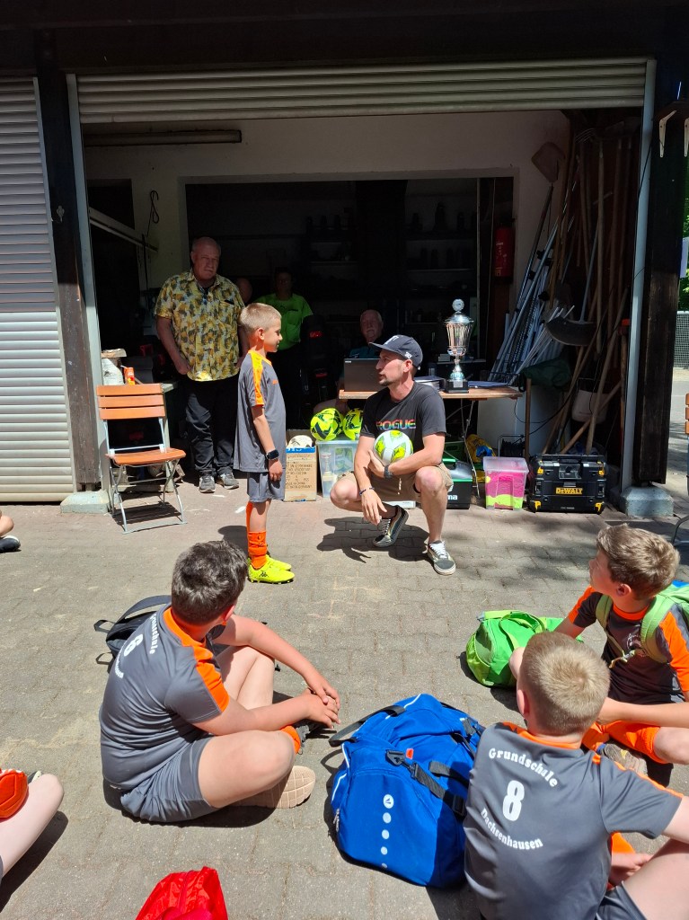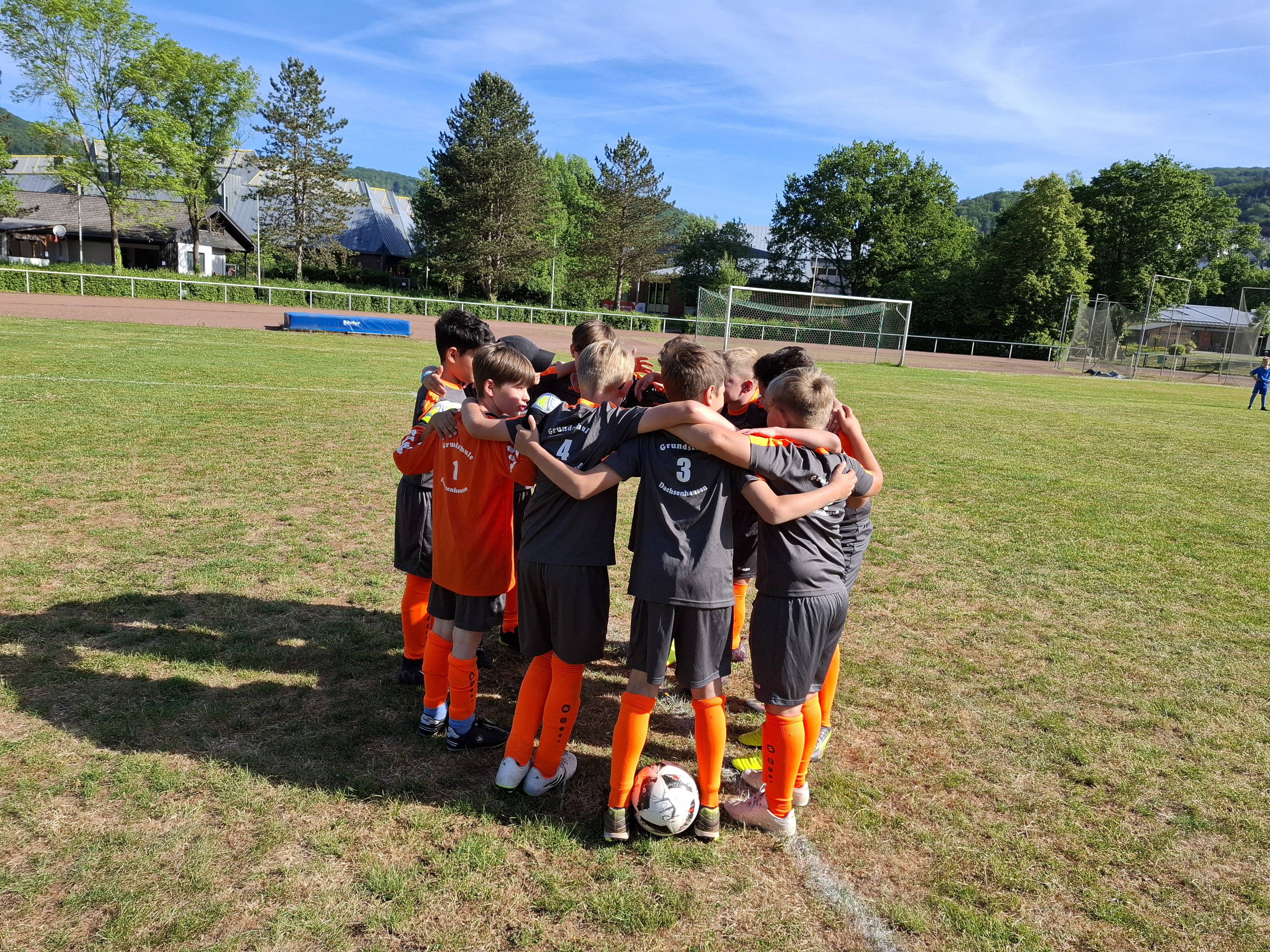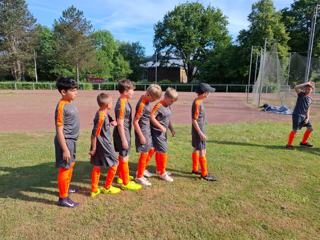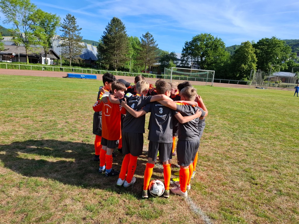 Elf Jungs aus der dritten und vierten Klasse nahmen am Dienstag, dem 20.05.2025 an dem jährlichen Fußballturnier der kleinen Grundschulen in Nassau teil. Insgesamt 9 Mannschaften kämpften bei strahlendem Sonnenschein um den heißbegehrten Wanderpokal. Gespielt wurde in zwei Gruppen. Der Gruppe A zugeteilt, spielte die Grundschule Dachsenhausen gegen die Mannschaften der Grundschulen aus Birlenbach, Braubach, Dahlheim und Niederneisen. Im ersten Spiel unterlag man mit einem 3:0. Auch im zweiten Spiel musste man sich mit einem 4:0 geschlagen geben. Trotzdem hat die Mannschaft weiter gekämpft und alles gegeben. Im dritten Spiel konnten sie sich dann endlich mit einem 3:0 durchsetzen. Im vierten Spiel musste die Mannschaft aus Dachsenhausen den Sieg holen, allerdings verlor man gegen die Mannschaft aus Niederneisen knapp mit einem 1:2. Die Grundschule Dachsenhausen belegte den 7. Platz des Turniers. Rundum war es ein sehr erfolgreicher Tag nach dem Motto „Teamwork“ und „Fairplay“. So wurde Enrico Mosgold mit dem Fairnesspreis ausgezeichnet. Er bekam als Preis einen Fußball überreicht.