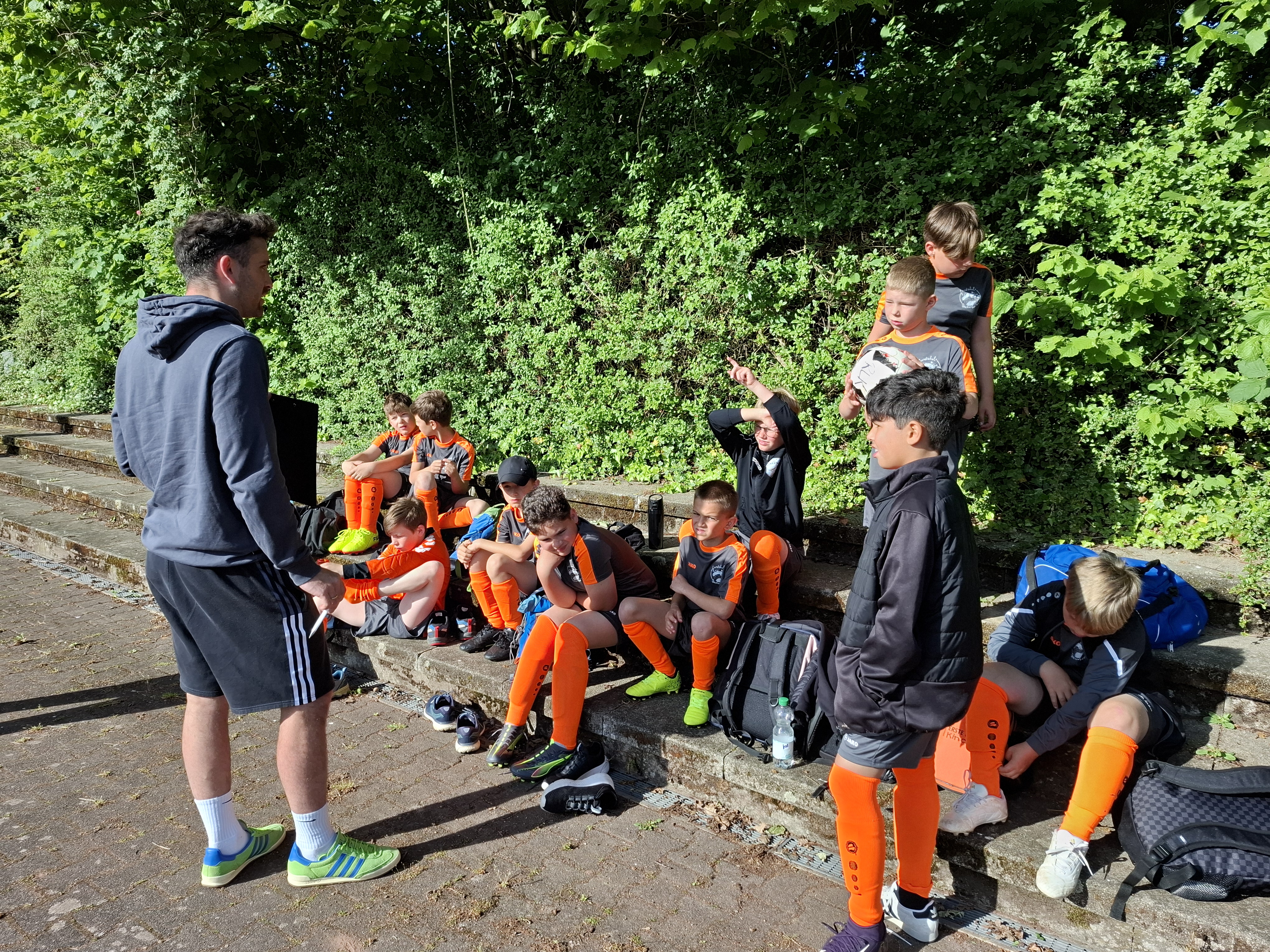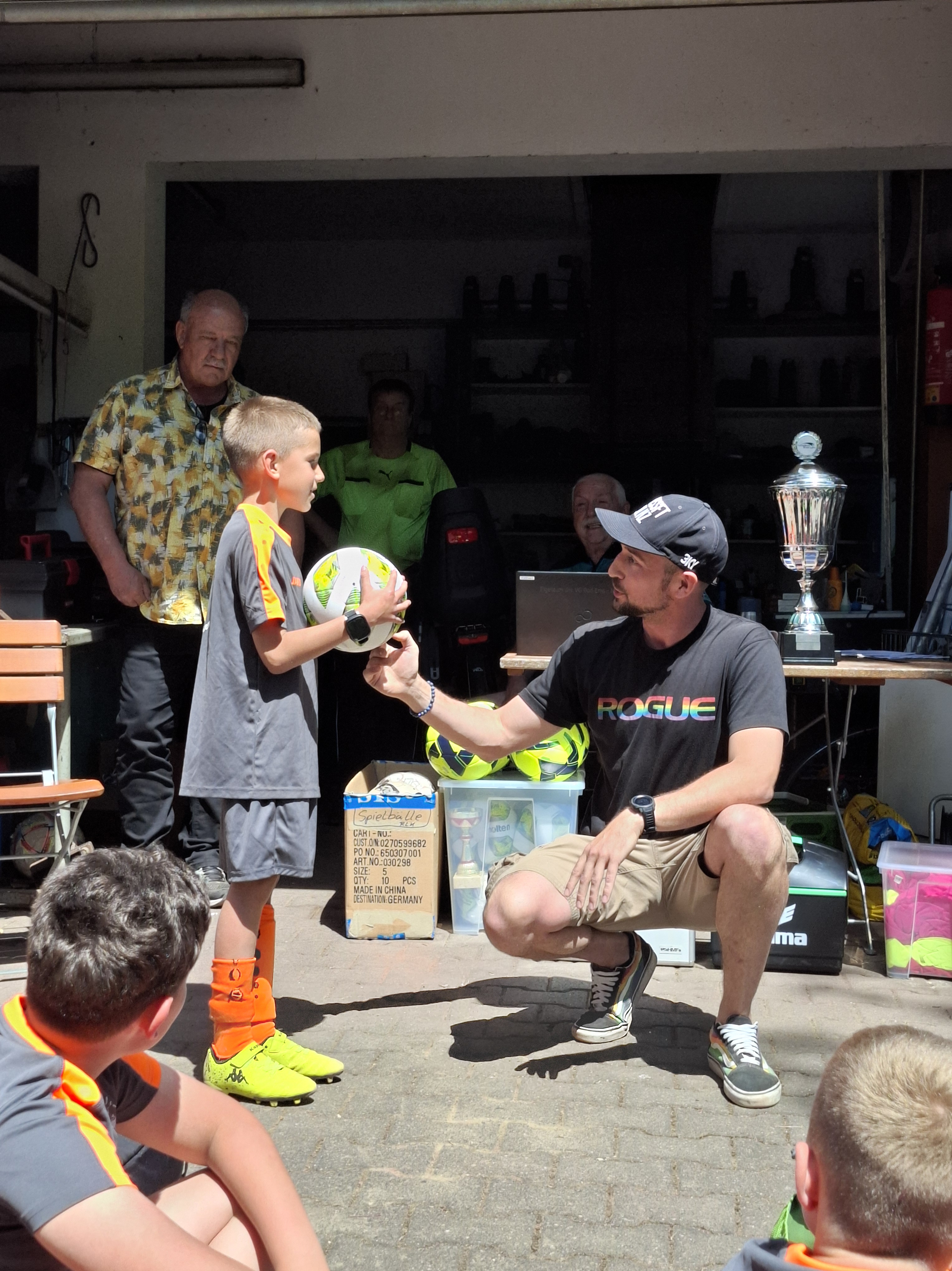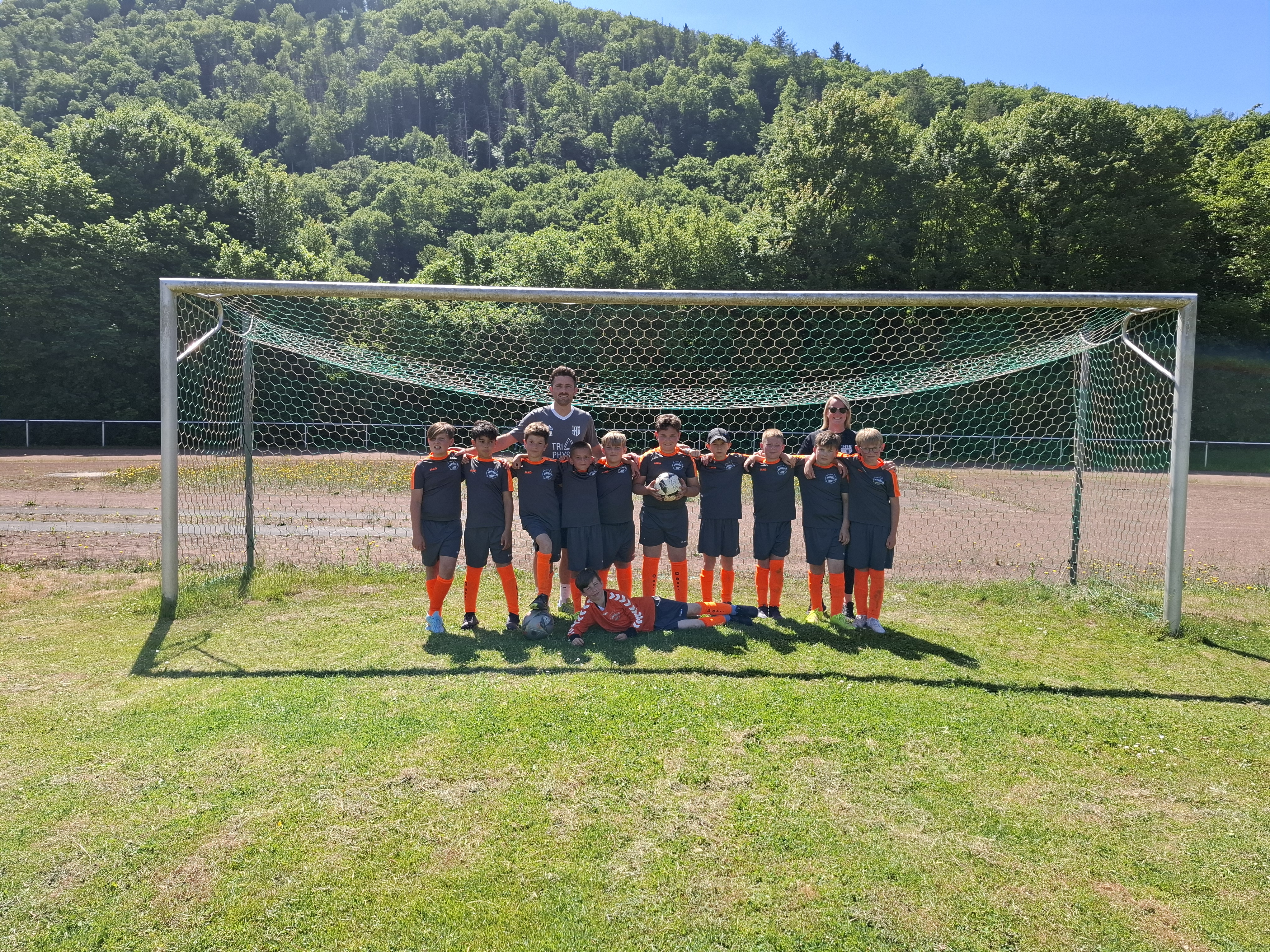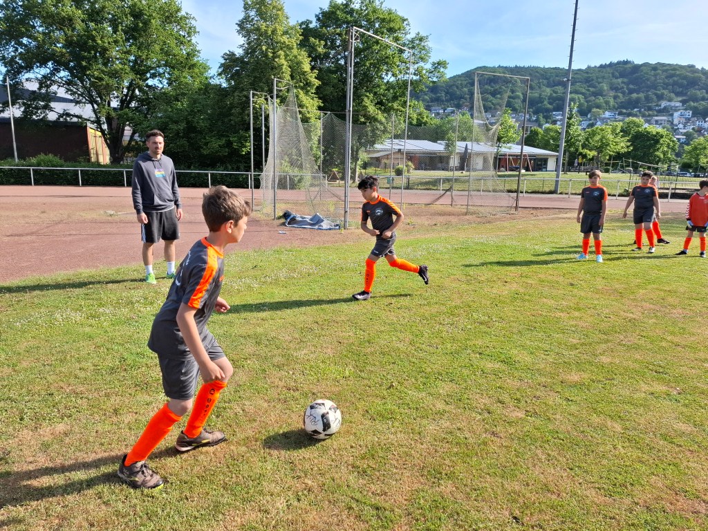 Elf Jungs aus der dritten und vierten Klasse nahmen am Dienstag, dem 20.05.2025 an dem jährlichen Fußballturnier der kleinen Grundschulen in Nassau teil. Insgesamt 9 Mannschaften kämpften bei strahlendem Sonnenschein um den heißbegehrten Wanderpokal. Gespielt wurde in zwei Gruppen. Der Gruppe A zugeteilt, spielte die Grundschule Dachsenhausen gegen die Mannschaften der Grundschulen aus Birlenbach, Braubach, Dahlheim und Niederneisen. Im ersten Spiel unterlag man mit einem 3:0. Auch im zweiten Spiel musste man sich mit einem 4:0 geschlagen geben. Trotzdem hat die Mannschaft weiter gekämpft und alles gegeben. Im dritten Spiel konnten sie sich dann endlich mit einem 3:0 durchsetzen. Im vierten Spiel musste die Mannschaft aus Dachsenhausen den Sieg holen, allerdings verlor man gegen die Mannschaft aus Niederneisen knapp mit einem 1:2. Die Grundschule Dachsenhausen belegte den 7. Platz des Turniers. Rundum war es ein sehr erfolgreicher Tag nach dem Motto „Teamwork“ und „Fairplay“. So wurde Enrico Mosgold mit dem Fairnesspreis ausgezeichnet. Er bekam als Preis einen Fußball überreicht.