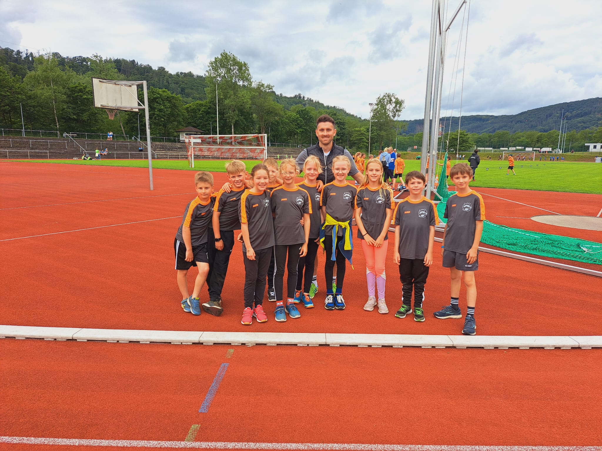 Am 05.06.2025 machten sich fünf Mädchen und fünf Jungen der dritten und vierten Klassen der Grundschule Dachsenhausen auf den Weg nach Bad Ems zum Leichtathletiksportfest des Rhein-Lahn-Kreises. Sie mussten ihr Können in verschiedenen Disziplinen unter Beweis stellen und sich mit Schülerinnen und Schülern aus zehn weiteren Grundschulen aus dem Umkreis messen. Im Laufe des Vormittages durchliefen die Kinder insgesamt acht Stationen mit unterschiedlichsten sportlichen Herausforderungen. Neben den Klassikern Weitsprung, Ausdauerlauf und Weitwurf, gab es auch Disziplinen wie Hochsprung, Medizinballstoßen oder die Bananenkartonstaffel, die nicht regelmäßig auf dem Stundenplan stehen.